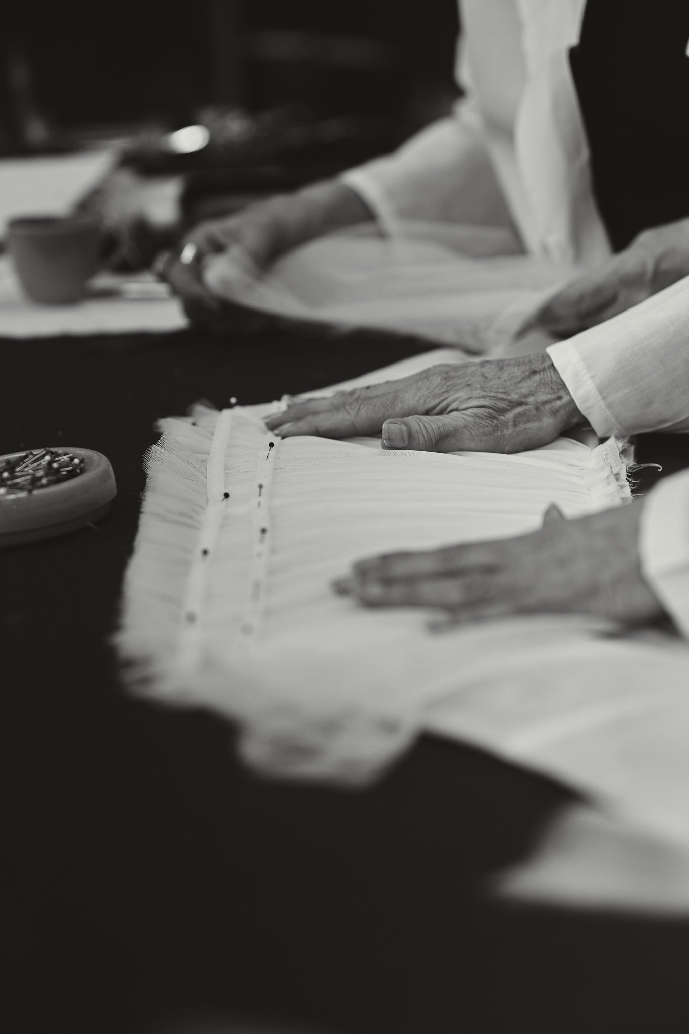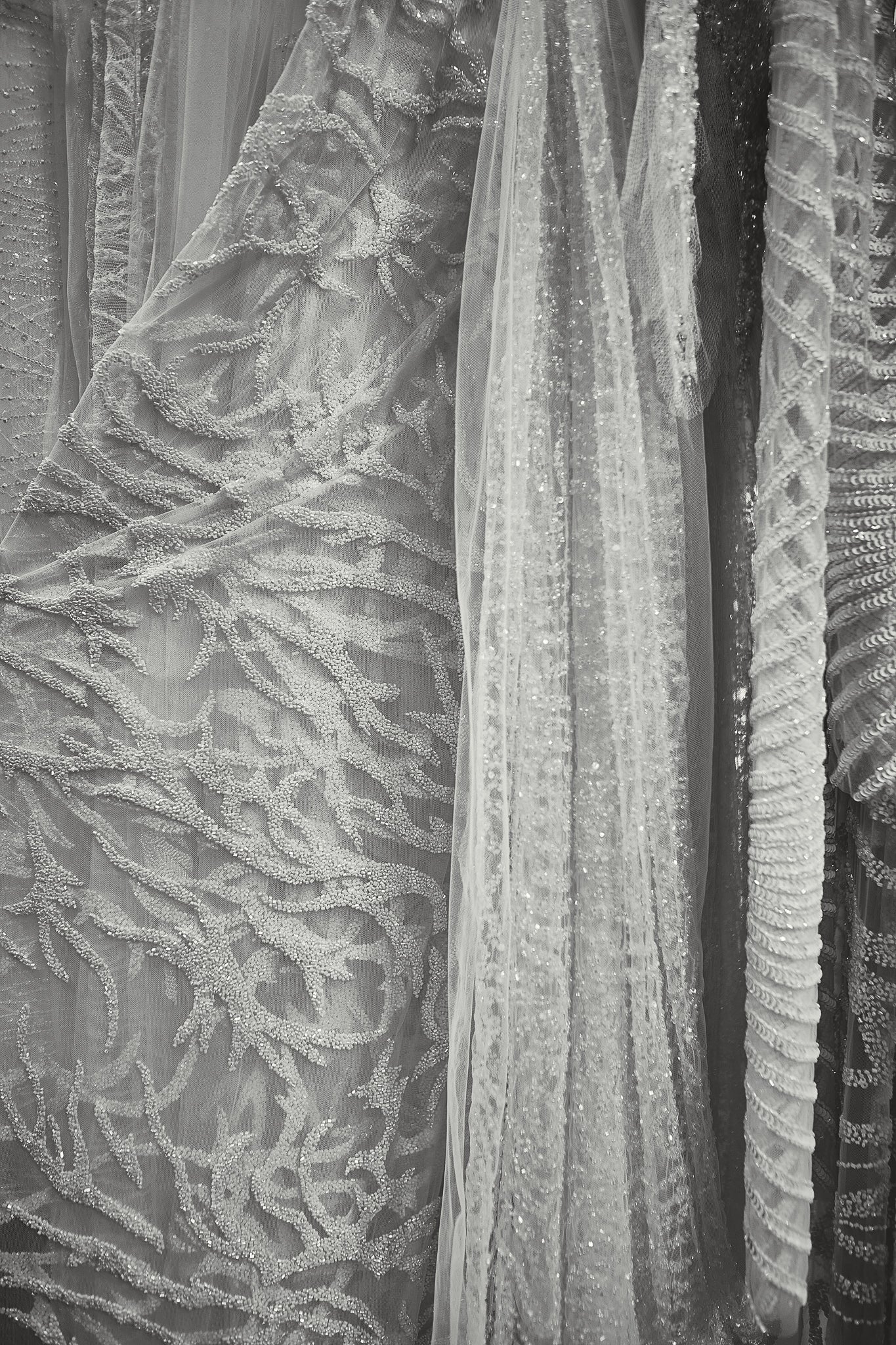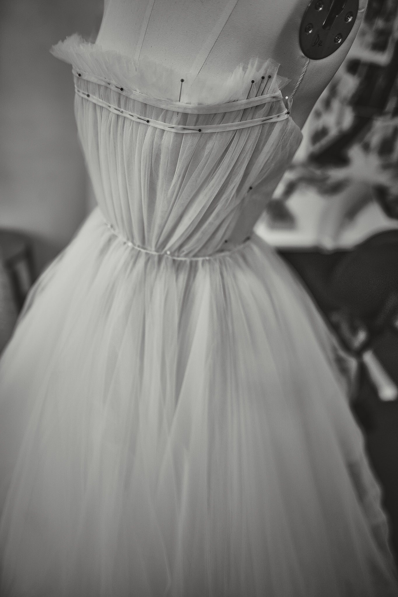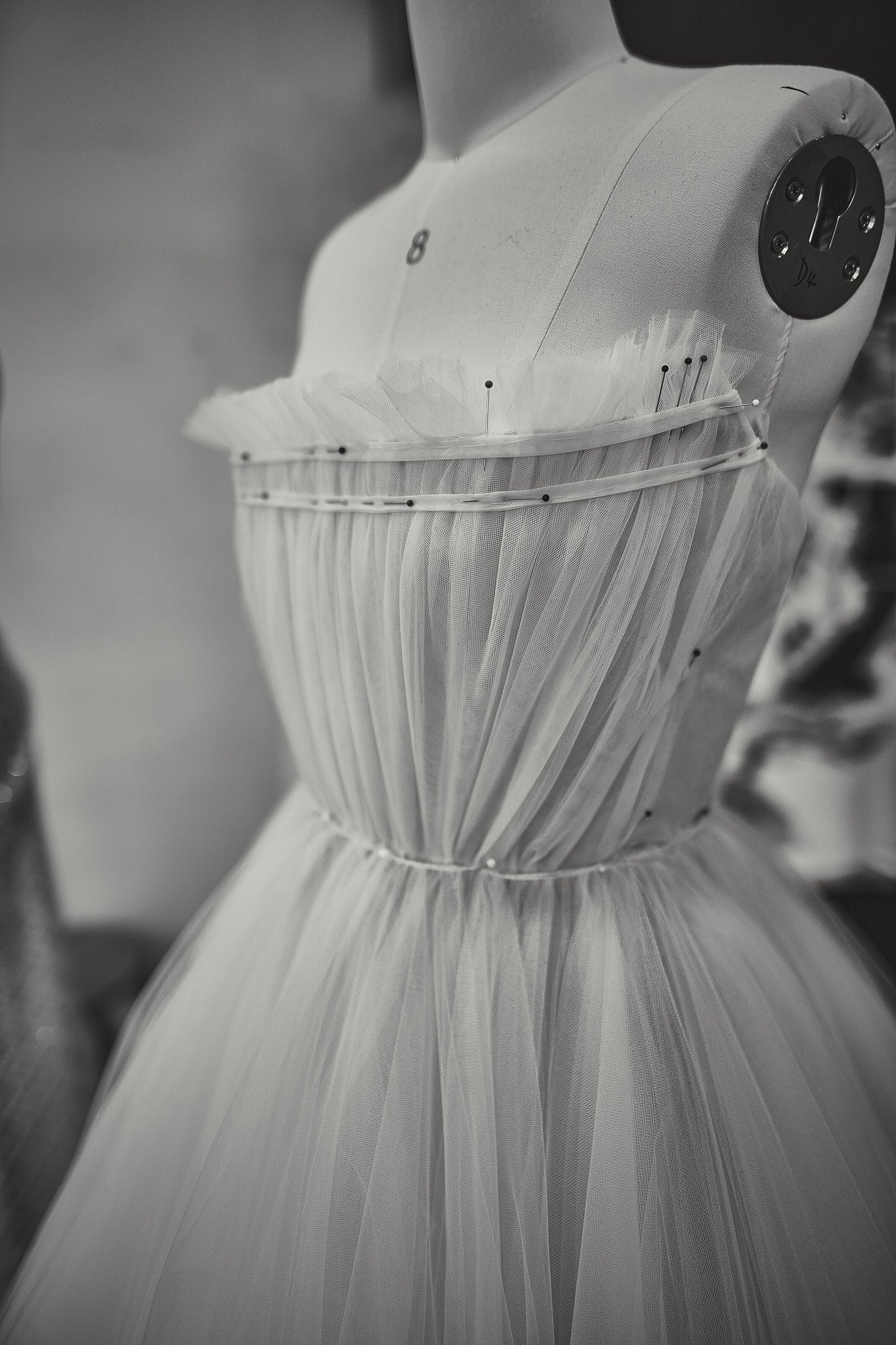 Your couture gown is crafted over several months and multiple fittings. After the first toile, we begin assembling your dress, starting with the lining. Each fitting allows us to make precise adjustments, ensuring your gown fits flawlessly and reflects your vision. Specialty fabrics, laces, and embellishments are reviewed and approved as the design evolves. Our team is committed to as many fittings as needed to achieve a perfect fit and exquisite finish.